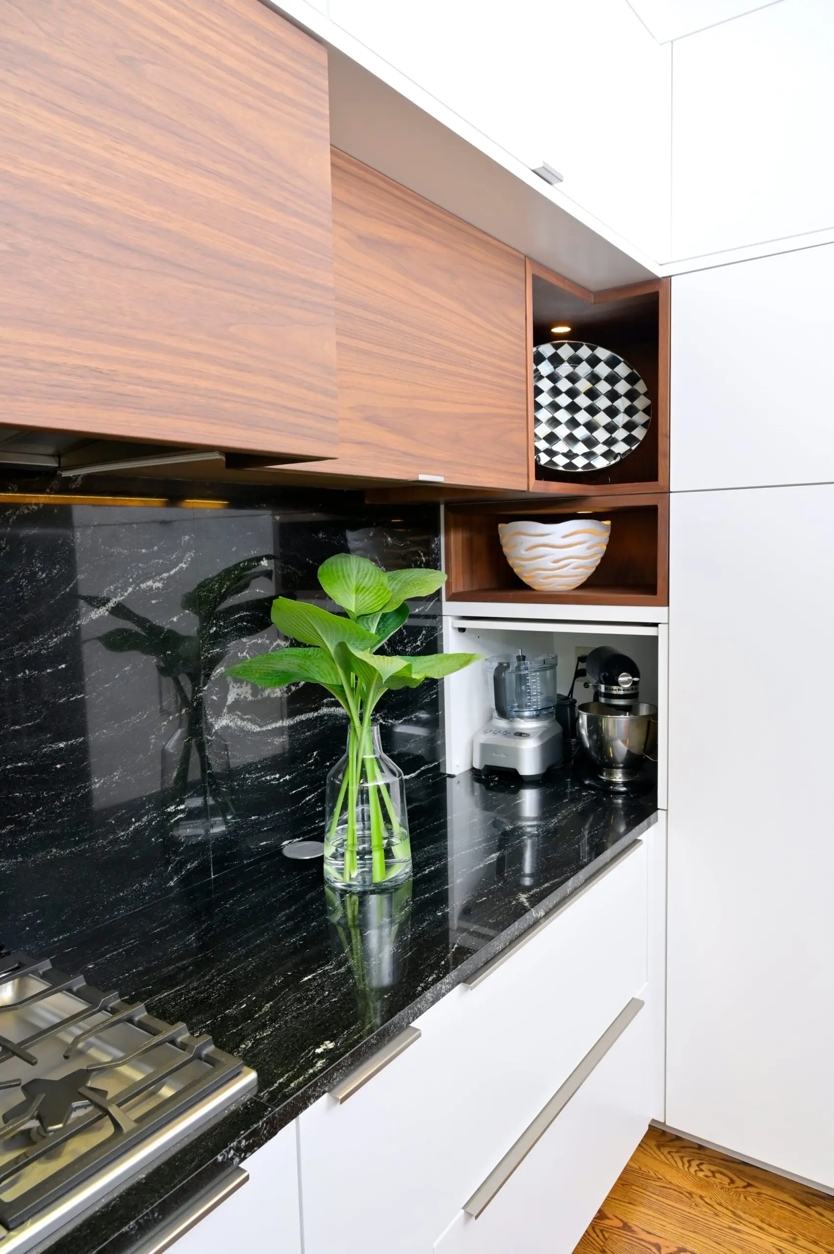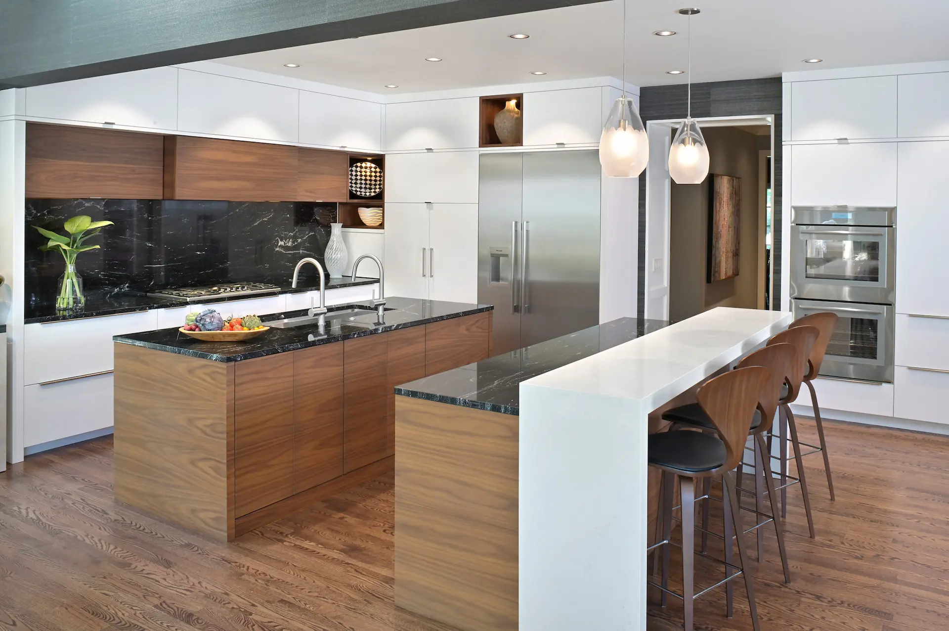 This project brings together organic wood grain with clean, crisp lines to create a modern urban kitchen.
